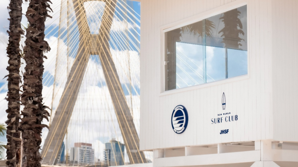 Der São Paulo Surf Club mit der Ponte Estaiada, der legendären Brücke der Stadt, im Hintergrund. Bildmaterial: Mit freundlicher Genehmigung von JHSF.
