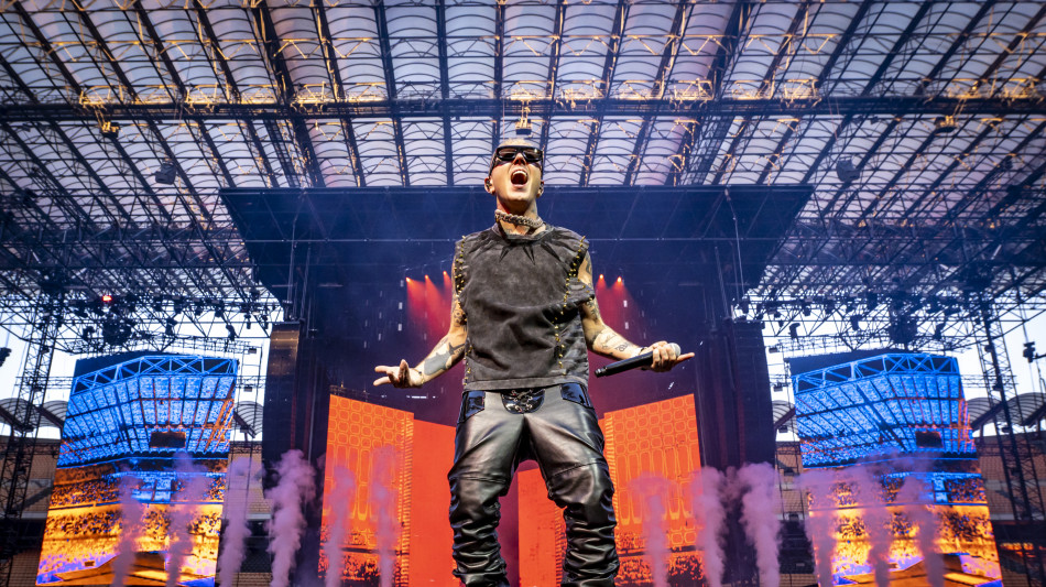 Il suo primo concerto a San Siro Lazza lo vive un po' come una partita di Champions. Così prima di salire sul palco a presentare la "squadra da Champions", cioè i musicisti della band insieme a 12 elementi dell'orchestra Sinfonica di Milano, è Germano Lanzoni, la voce del Milan, la squadra del cuore sua e, a giudicare dal numero di maglie rossonere, anche di buona parte del pubblico. "Benvenuti a casa di ZZala. Che emozione. In questo tempio di mostri sacri stasera voglio giocare anche io" dice Lazza dopo l'inizio di Ouv3rture, uno dei brani in cui unisce la sua capacità con le rime e il rap e il diploma in pianoforte al conservatorio. Ma è solo il riscaldamento mentre canta e balla con il pubblico per Molotov e Zonda in questo inizio del suo progetto live Lacura Jam+Opera. Il primo ospite speciale è sua madre, che porta, sorpresa e commossa, sul palco. "Vieni, socia, volevo farti vedere che meraviglia. Questo è merito tuo e anche se un giorno ci scorniamo e pure l'altro, mi sembra giusto ringraziarti" le dice regalandole una Birkin di Hermès, come le aveva promesso in Re Mida. Ma è solo il primo degli ospiti di uno squadrone che va da Fabri Fibra a Laura Pausini, passando per Emis Killa, Marracash e Jake La Furia. Per Mob lo accompagnano Salmo & Nitro, "due persone che mi hanno insegnato come si sta qua sopra" e poi Kid Yugi per Mezze verità. Portocervo è uno dei suoi primi successi, del 2019, e tutti lo conoscono e lo cantano. "Questa la cantate voi" dice al pubblico mentre parte l'attacco di Panico. Ma sono più di quaranta i brani. Verdi nel viola precede l'arrivo sul palco di Germano Lanzoni, mentre i vari anelli dello stadio fanno una coreografia rossonera. Poi Lazza canta Ouverfour inizialmente solo con l'accompagnamento del piano: lui con indosso smoking, camicia targata Fendi, papillon e cappellino. Sul palco porta la compagna Greta Orghinser e le stringe la mano, perché "le cose quando sono belle si fanno in famiglia e noi siamo una bellissima famiglia, col piccolino". È il momento più intimo, accompagnato al piano dal maestro Zielinski, di questo spettacolo prodotto da Vivoconcerti e disegnato dallo studio Blearred con un palco contornato di maxischermi led con una ventina di bocche di fuoco. Poi al piano si mette lo stesso Lazza per Catrame che canta con Tedua. Cresce l'attesa per il nuovo capitolo di questa antologia lazziana. Lui arriva con la maglia del Milan, il numero 1 e la scritta Tino. C'è Anna per BBE. "Te lo meriti troppo" gli dice, prima di lasciare il posto a Emis Killa e Jake La Furia per No insta. "Sono orgoglioso di te come se fossi mio figlio" lo abbraccia Emis. Ma è ora di Gigolò con Capo Plaza, per Honey si unisce a loro Tony Effe. E poi fa "una cosa che non faccio dal 2019: l'avevo promesso" spiega e intona Superman. "Questa sera vien giù lo stadio" recitano le parole di Lario, mentre la canta inginocchiandosi all'arrivo di Fabri Fibra. In questo girone di Champions non manca quasi nessuno e infatti entra in campo Sfera Ebbasta per Piove e poi anche Shiva. L'ulteriore capitolo inizia con i professori d'orchestra sul palco per Laura Pausini in Zeri in più (Locura), il featuring che dà il titolo all'ultimo album di Lazza. "Guarda dove sei" dice saltando lei, che si prende una ovazione. "Quasi mi vergogno perché sei troppo più forte" le risponde lui. Ghali duetta in Ghetto, con Geolier in Nessuno e Chiagne. Cenere dovrebbe farla da solo e allora sul palco porta la nonna, la canzone che ha portato a San Siro nel 2023. Sono le 23 e Lazza va ai supplementari. "Che spettacolo, non pensavo di arrivare a tanto" dice guardando il pubblico e intona -3, con Marracash a dargli man forte. "Volevo dirvi una cosa importantissima che sento dire sempre meno: grazie. Voglio ringraziare ogni singola persona qui stasera" spiega per poi dedicare la sua Morto mai "a chi non si è arreso". Sul palco sale anche il papà di Lazza per Dolcevita, il brano da Locura che preferisce. "Papà... Ti ricordi quella volta che siamo andati al derby? Ti ho detto: 'Fra due anni, questo stadio lo riempio io'. Quella partita l'abbiamo persa… ma stasera - conclude - l'abbiamo vinta insieme".